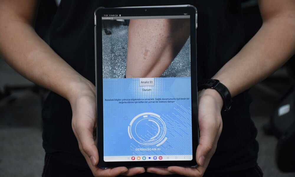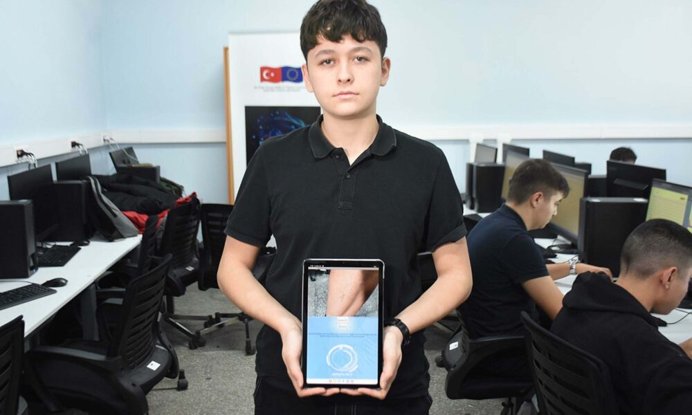 DermaScan AI projesine ilişkin bilgi veren Konak Çınarlı MTAL öğrencisi Umut Rıza Söylemez, “Diyabet hastasıyım. Hastanelerdeki yoğunluğu, randevu bulmanın uzun süreçler olduğunu biliyorum. Kanser teşhisinin hızlı konulması için bu yöntemi bulduk. Projemizle insanlar hastaneyle uğraşmayacak, süreç uzun sürmeyecek ve hastanelerdeki yoğunluk azalacak diye düşündük. Akıllı cihazların kamerasıyla vücudunuzda şüphe duyduğunuz bölgelerin fotoğrafını çekip, sisteme yüklüyorsunuz. Yapay zeka çekilen fotoğrafı sistemin içindeki fotoğraflarla eşleştiriyor. Fotoğraflar eşleşiyorsa, Kanser olma riskiniz var diye uyarı veriyor. Sistemde 3 binden fazla fotoğraf var. Projeyi daha da geliştirmeyi, bir havuz oluşturup direkt doktorlara yönlendirebilen bir randevu sistemi oluşturmak istiyoruz” dedi.