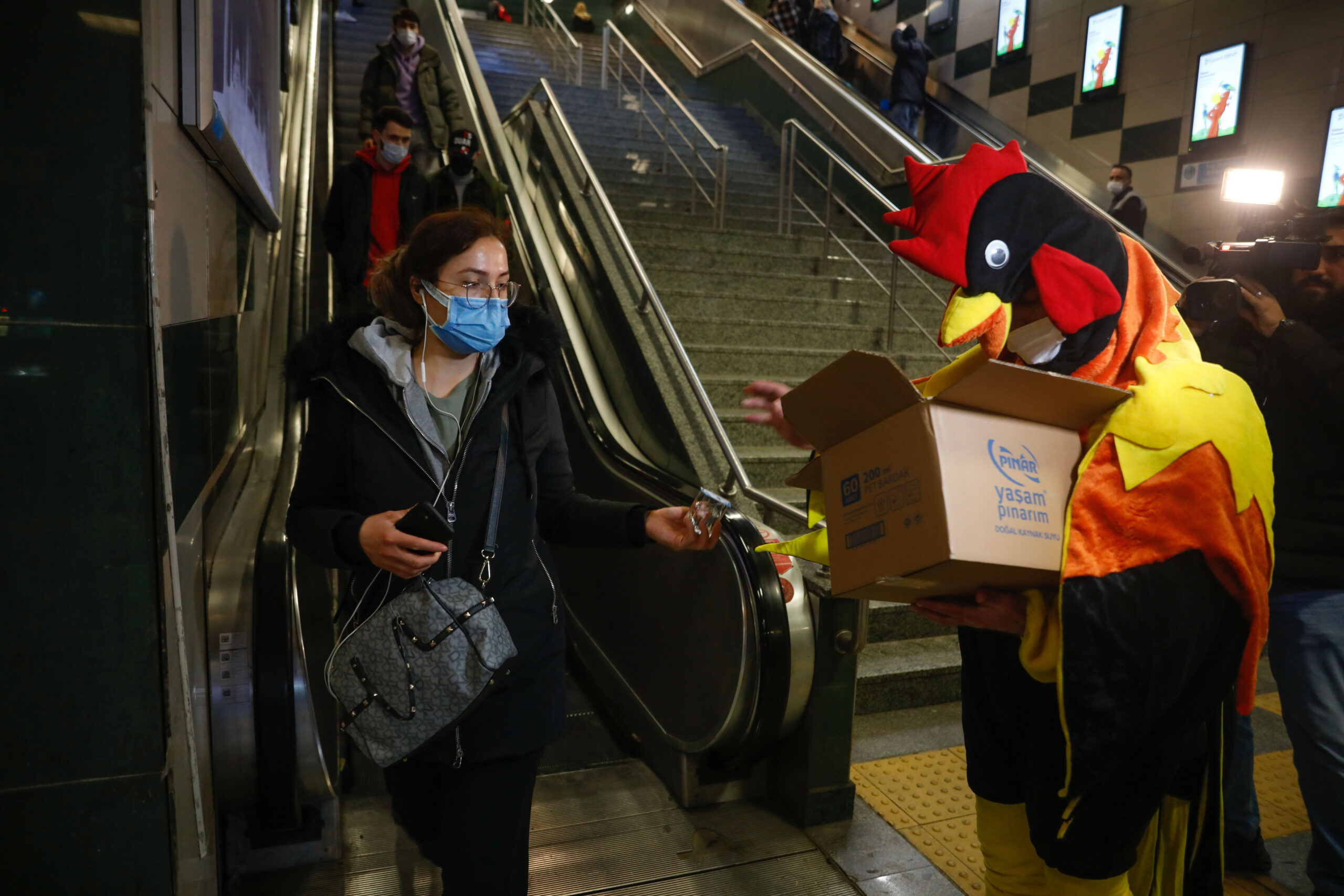Metro girişinde horoz kostümlü ‘su için’ çağrısı