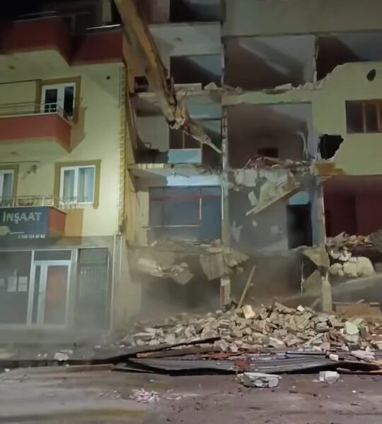 • Binanın yıkım çalışmaları bir vatandaşın cep telefonu kamerası tarafından kaydedildi. Fotoğraf: İzmit(Kocaeli), (DHA)