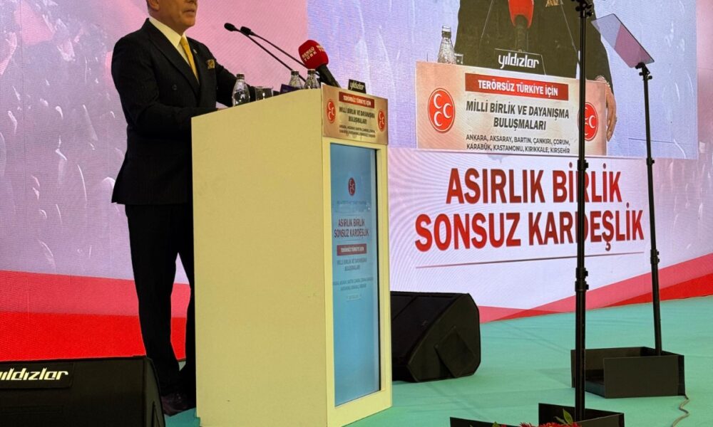 Ahmet Selim Yurdakul da terörsüz Türkiye sürecine ilişkin iki önemli konuya açıklık getirmek istediğini belirterek, “Birincisi; terörsüz Türkiye hedefinin hiçbir yerinde terör örgütüyle pazarlık, teröre verilmiş bir taviz kesinlikle yoktur. Milletimizden gizlenen hiçbir şey yoktur. İkincisi ise Anayasanın ilk dört maddesi, 42 ve 66ncı maddeleriyle ilgili hiçbir tartışma söz konusu bile değildir. Bizim meselemiz ayrılık değil, birliktir. Kavga değil, kucaklaşmadır. Milliyetçi Hareket Partisi olarak inanıyoruz ki Türküyle, Kürdüyle, Sünnisiyle, Alevisiyle, bu aziz millet, bir bütünün parçaları değil, bir kaderin ortaklarıdır. Yüzyıllardır omuz omuza verdiğimiz bu topraklarda, kimseye etnik kimliğiyle değil, insanlığıyla, vatan sevgisiyle, bayrak bağlılığıyla bakarız. İşte bu yüzden diyoruz ki toplumsal kucaklaşma sadece bir temenni değil, bu milletin geleceğe yürüyüş rotasıdır. Biz bin yıllık kardeşliğimizi siyaset üstü bir hakikat olarak görüyoruz. Bu kardeşliği yeniden diri tutmak, tazelemek ve milli ülküler etrafında kenetlenmek zorundayız. Çünkü ortak paydamız Türkiyedir. Çünkü bayrağımız birdir, vatanımız tektir, ülkümüz ise yüksektir. Bizi bölmek isteyenler, fitne tohumları ekenler bilsinler ki bu milletin mayasında kardeşlik vardır, bu milletin ufkunda birlikte yükselmek vardır. Biz bu kutlu yolda asla geri durmayacağız” diye konuştu.