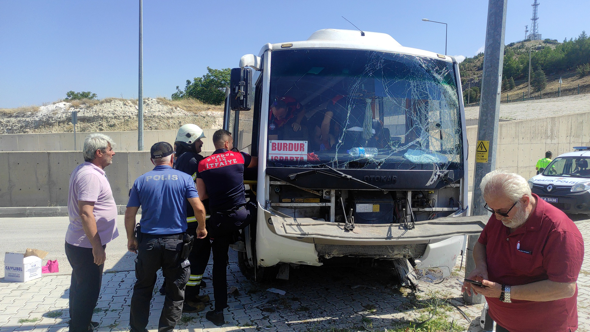 Kaza saat 11.00 sıralarında Burdur Otogarı girişindeki yan yolda meydana geldi. Ispartadan Burdura yolcu taşıyan Mustafa S., yönetimindeki 15 SA 379 plakalı yolcu midibüsün iddiaya göre freni boşaldı. Otogar girişindeki yolda sürücüsünün kontrolünü kaybettiği midibüs, 2 metre yükseklikteki istinat duvarından yan yola düştü. İçinde 18 yolcunun bulunduğu midibüs, kaldırımdaki aydınlatma direğine çarparak durdu. Kazada sürücü ile 10 yolcu yaralandı.