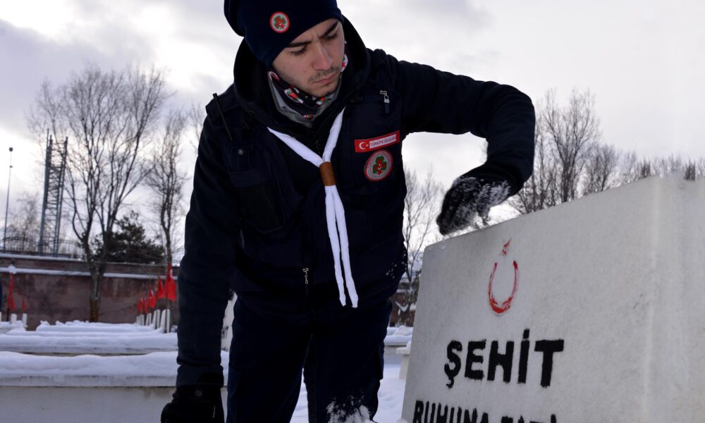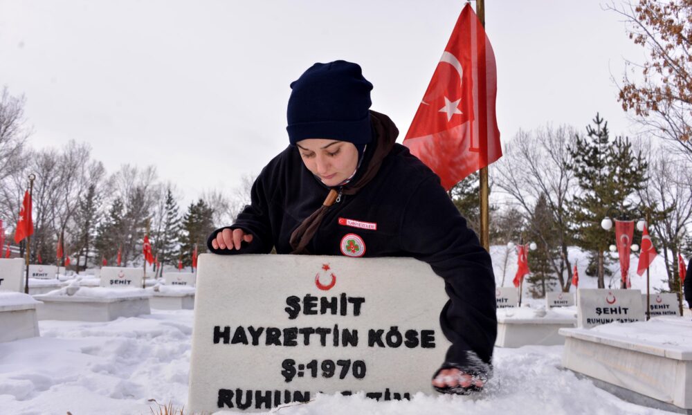 Suriyedeki savaştan kaçarak Türkiyeye gelen Hanin Şemrek (19), diğer izci liderleriyle birlikte şehit mezarlarını ziyaret etti. Mezarda kar temizliği yapan Şemrek, “Dedelerimizi, atalarımızı görmeye geldik. Onların o zamanda yaşadıklarını bir nevi olsun hissetmek için onların yanlarına geldik. Allahuekber Dağları’na da çıkacağız” dedi.