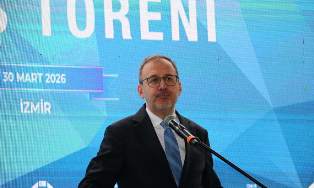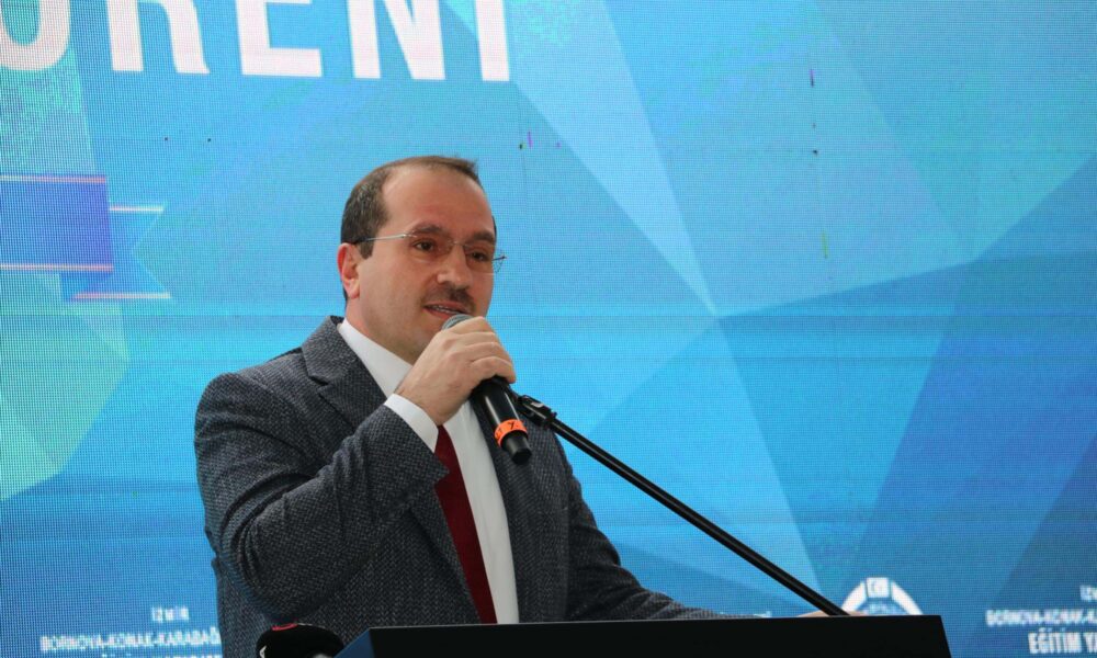Bornova ilçesindeki Tevfik İleri Ortaokulu'nda İzmir Eğitim Yatırımları Açılış Töreni düzenlendi.Önceki dönem Gençlik ve Spor Bakanı, AK Parti İzmir Milletvekili Mehmet Muharrem Kasapoğlu (Fotoğrafta).Fotoğraf:Yağmur ÖNGÜN/İzmir,(DHA)