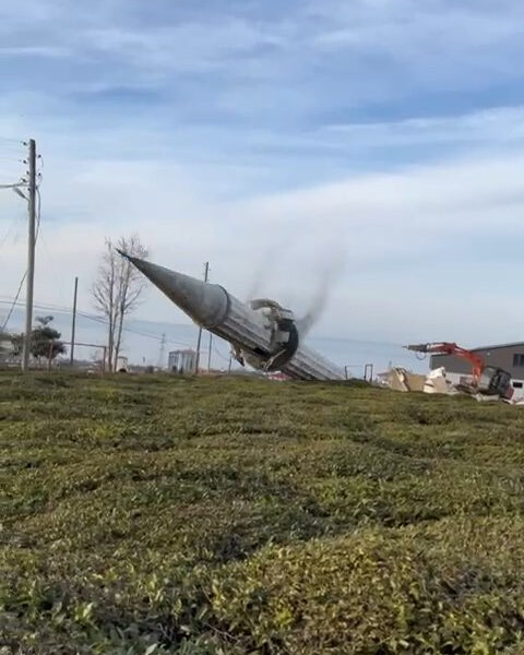 Minarenin kontrollü yıkımı kamerada