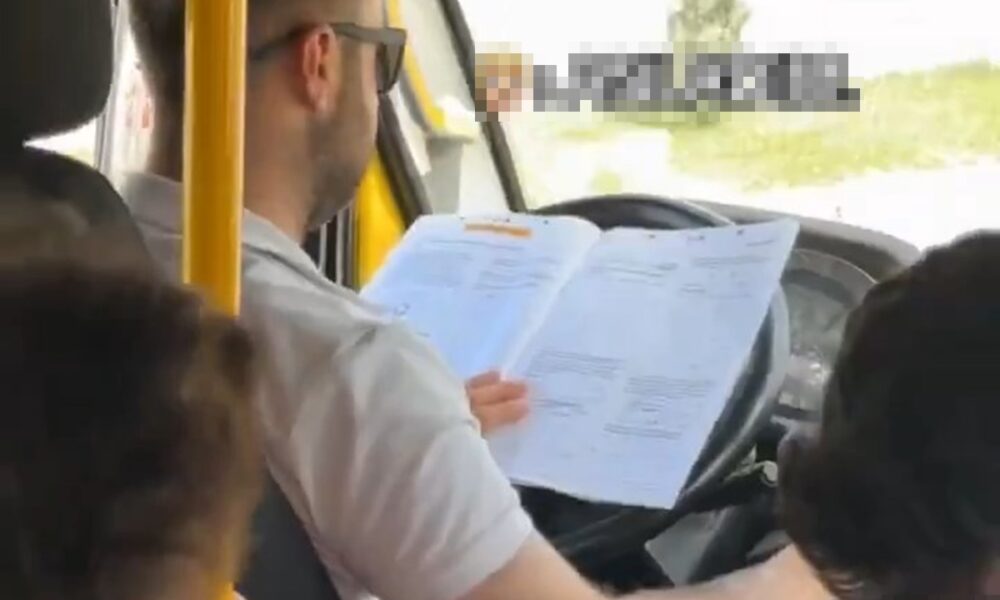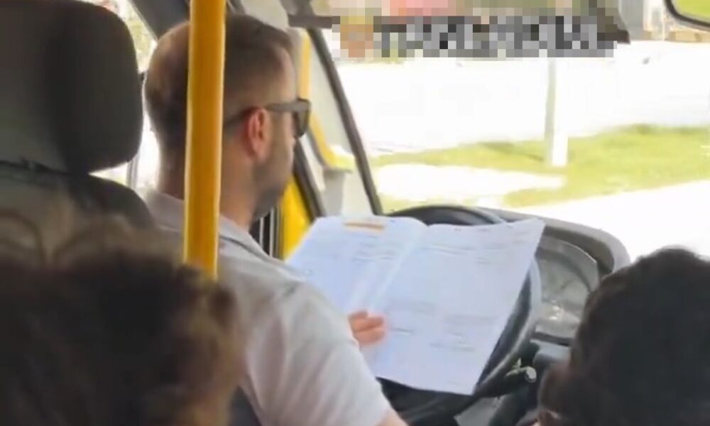 Minibüs şoförü, direksiyonda kitap okurken görüntülendi