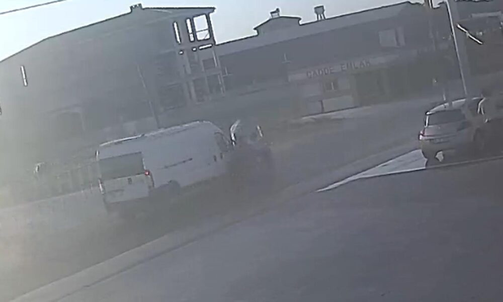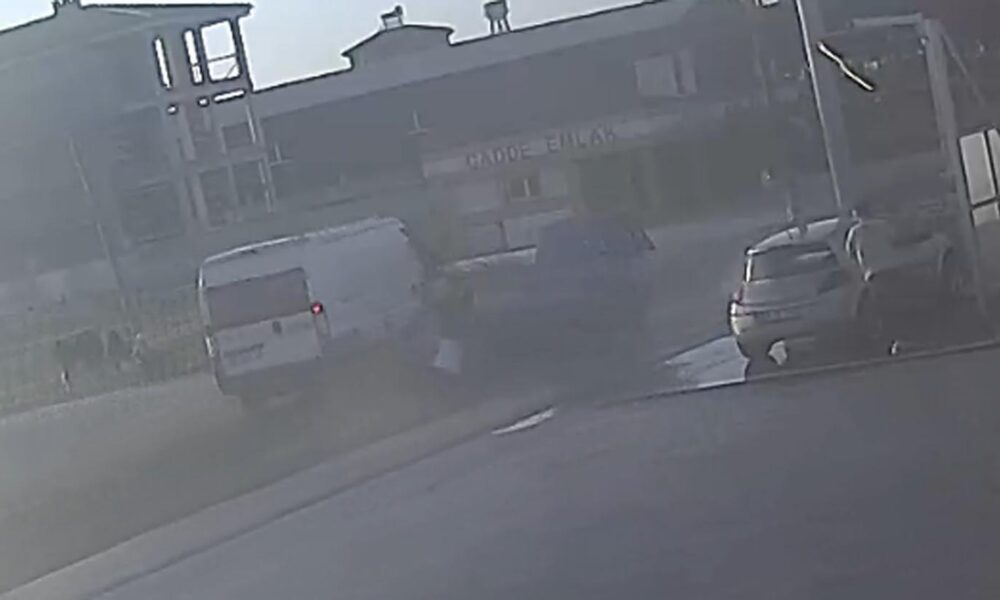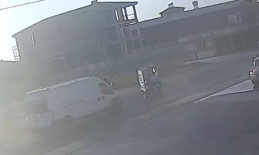 Minibüsle çarpışan triportörde 2 kişi yaralandı; kaza kamerada