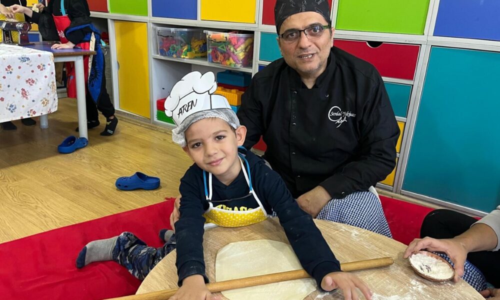 Gaziemir İMKB Mesleki ve Teknik Anadolu Lisesi'nin uygulamalı ana sınıfı öğrencileri, 'Eğitimde Ailenin Gücü' projesi kapsamında aileleriyle birlikte mutfak atölyesi yaptı. Fotoğraf: İzmir,(DHA)