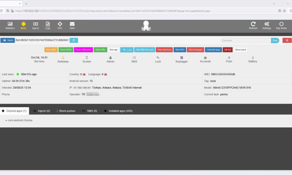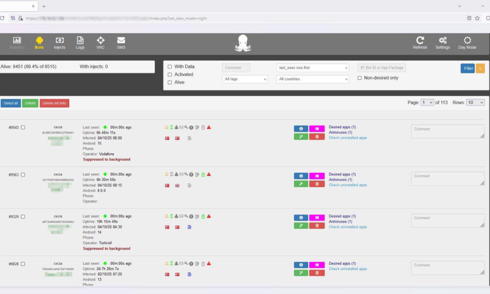 Soruşturma kapsamında tespit edilen şüphelilere yönelik İstanbul merkezli İzmir, Van, Elazığ, Bingöl ve Hakkaride eş zamanlı operasyon düzenlendi. Gerçekleştirilen şafak operasyonunda toplam 12 şüpheli yakalanarak gözaltına alındı. Şüphelilerden 10u tutuklandı, 2si serbest bırakıldı. Operasyonlar sırasında ekipler aramalarda çok sayıda dijital materyal, kripto para cüzdanı, nakit para ve döviz ele geçirildi. Gerçekleştirilen operasyon neticesinde, oltalama saldırılarında ve dolandırıcılık faaliyetlerinde kullanıldığı belirlenen 318 internet sitesi ele geçirilerek erişime kapatıldı. Ayrıca, siber suç örgütünün mobil telefonlara yüklediği zararlı yazılımları yönetmek amacıyla kullandığı özel kontrol paneli de ele geçirildi. Bu panel vasıtasıyla telefonların tamamen kontrol altına alındığı, kullanıcıların bilgisi dışında üçüncü kişilere SMS gönderilebildiği, gelen ve giden çağrıların yönlendirilebildiği, cihazın kamerası ve ekranının uzaktan izlenebildiği ve anlık konum bilgilerinin takip edilebildiği tespit edildi. Ayrıca yazılımın, klavye tuşlamalarını kaydederek şifreler ve tek kullanımlık doğrulama kodları gibi en hassas bilgileri saldırganlara ilettiği belirlendi. Bu yöntemle saldırıların yalnızca para amaçlı olmadığı; anlık konum takibiyle hedeflerin izlendiği, kamera görüntüleri kullanılarak şantaj yapıldığı ve binlerce vatandaşın kredi kartı bilgilerinin ele geçirildiği anlaşıldı. Faaliyetlerin örgütün yurt dışındaki uzantıları üzerinden koordine edilerek casusluk amacıyla da kullanıldığı tespit edildi.
