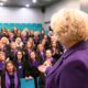 Mor renkli ceketiyle koroyu yöneten Aysel Gürel, söz ve müziği kendisine ait olan şarkıyı farkındalık yaratmak için sosyal medya platformlarında yayınlayacaklarını söyledi. Yaptıkları çalışmalarla kadınların sesi olduklarını belirten Gürel, “Biz, Bursa Nilüfer Kadın Korosu olarak, özelikle toplumda farkındalık yaratan çalışmalar yapıyoruz. Bunlardan bir tanesi de 25 Kasım, kadın korosu olarak çok önemli bir tarih. Çünkü kadına yönelik şiddetin ve cinayetlerin son zamanlarda çok arttığını görüyoruz. Biz kadınlar aslında güzel ve şiddetsiz bir dünyada yaşamayı hak ediyoruz. Söz ve müziği bana ait olan yaptığım bir çalışmayı seslendireceğiz. Amacımız toplumda farkındalık yaratmak. Bir duyarlılık yaratmak” diye konuştu.