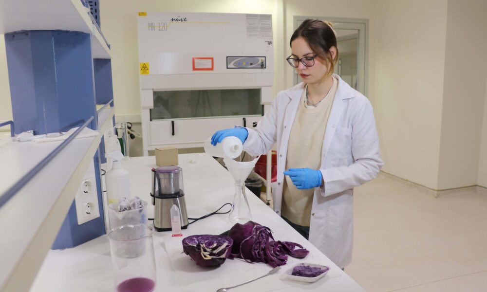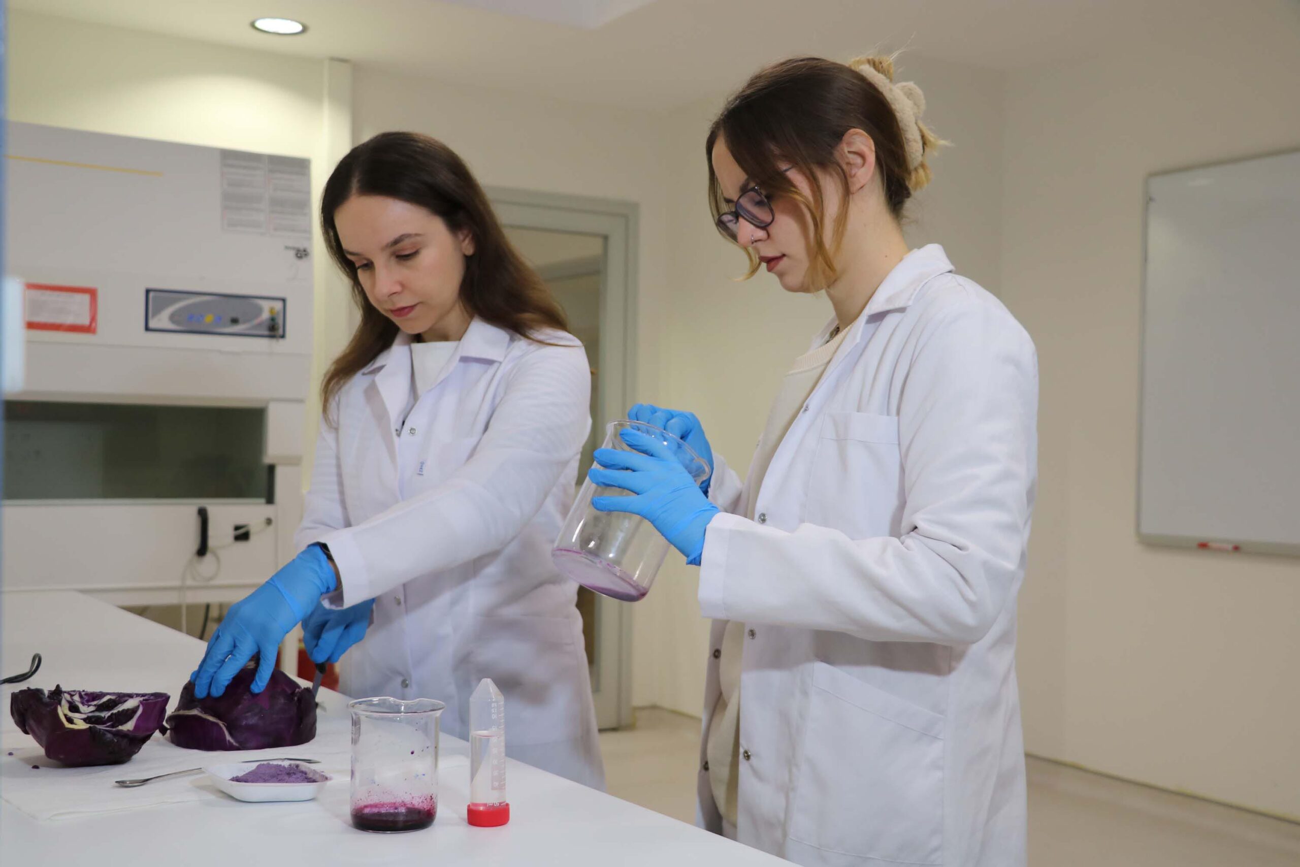 “Bunları daha kalıcı halde tutup kozmetik ürünlerde kullanmak için çalışmalar yapıyoruz. Şu anda kırmızı, mavi ve morun tonlarını elde ediyoruz. Renkleri elde edebilmek ve uzun ömürlü kullanabilmek amacıyla mor lahanayı eksi 18 derecede dondurma sürecimiz oluyor. Daha sonrasında pigmentin özütlenmesi çalışmalarını yürütüyoruz ve kalıcılığının sağlanması üzerine de çalışmalar yapıyoruz. En sonunda da testler yapılarak çıkarılan miktar tespit edilecek. Şu an yanak ve dudak renklendirmek için allık ile ruj ürünleri elde etmeyi amaçlıyoruz. Daha sonrasında far yapmayı düşünüyoruz.”