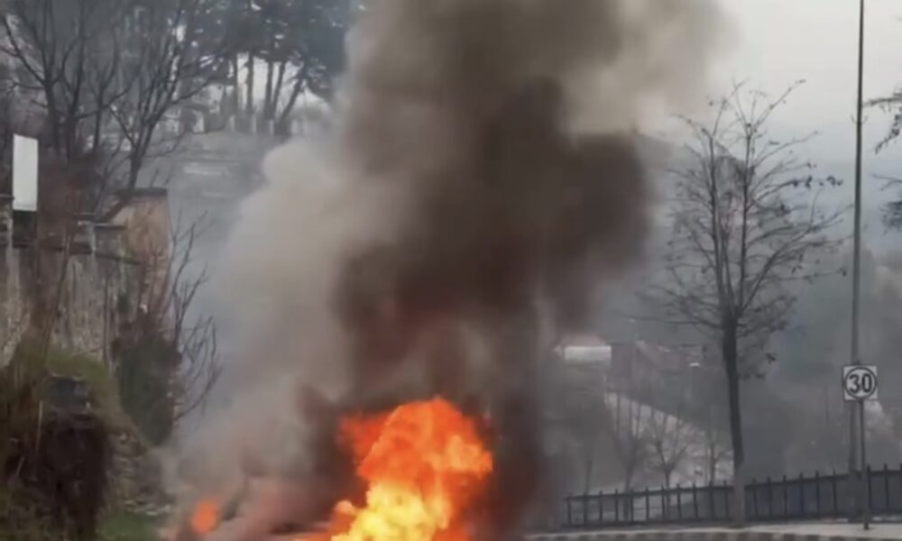 Motor kısmından tutuşan otomobil alev alev yandı