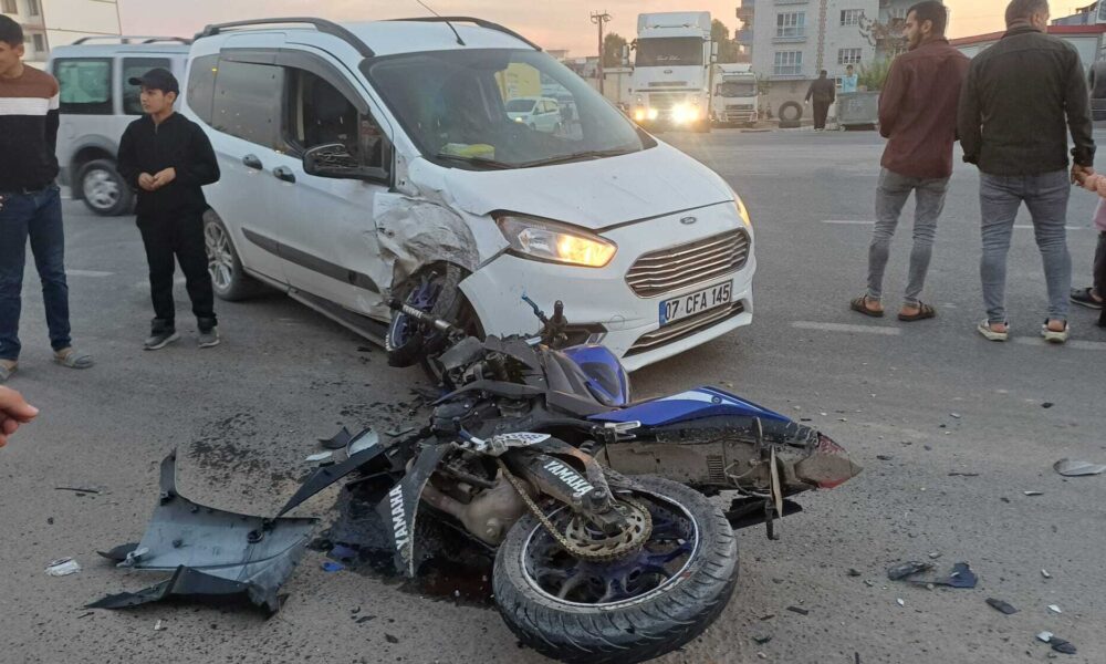 Kaza, akşam saatlerinde Silopi ilçesi İpekyolu Kavşağı’nda meydana geldi. Sürücüsünün ismi öğrenilemeyen 07 CFA 145 plakalı hafif ticari araç ile kavşaktan çıkan motosiklet çarpıştı. Çarpışmanın etkisiyle devrilen motosiklette bulunan M.Y. (30) ve E.Y. (24) yola savrularak yaralandı. İhbar üzerine kaza yerine sağlık ekipleri sevk edildi. İlk müdahaleleri yapılan yaralılar, ambulansla Silopi Devlet Hastanesi’ne kaldırıldı. Yaralıların sağlık durumlarının iyi olduğu öğrenildi.