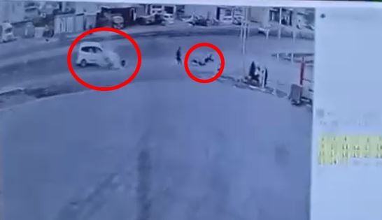 Kaza anı, çevredeki bir iş yerinin güvenlik kamerasına yansıdı. Otomobil sürücüsü ifade vermek üzere polis merkezine götürülürken, kaza ile ilgili soruşturma sürdürülüyor.