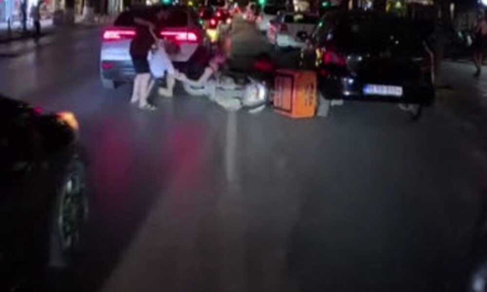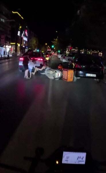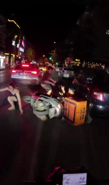 Kaza, önceki gün saat 22.30 sıralarında Menderes Caddesinde meydana geldi. Eşi ve çocuğuyla yolun karşısına geçmeye çalışan kadına, kuryenin kullandığı motosiklet çarptı. Çocuğunu çekerek son anda kurtaran kadın ile kurye yere düştü. Bu sırada kurye, kadının eşinin saldırısına uğradı. Çevredekiler, araya girerek tarafları ayırdı. Kadının durumunun iyi olduğu bildirildi.