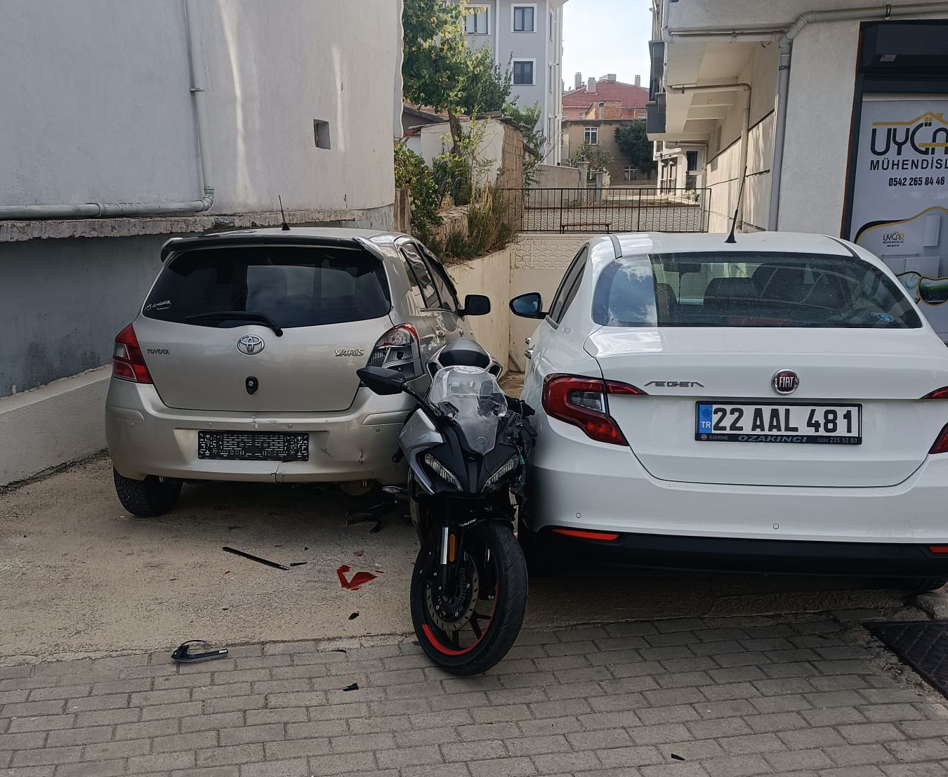 Kaza, öğle saatlerinde İspat Cami Mahallesi Hıdırağa Sokakta meydana geldi. H.B.A. yönetimindeki 22 AEC 908 plakalı motosiklet, T.A. idaresindeki 22 AES 957 plakalı otomobille çarpıştı. H.B.A.nın kontrolünü kaybettiği motosiklet daha sonra yol kenarında park halinde bulunan iki otomobilin ortasında sıkıştı. H.B.A., sıkışan motosikletten fırlayarak park halindeki başka bir otomobilin üzerine düşüp yaralandı. İhbarla olay yerine polis ve sağlık ekipleri sevk edildi. H.B.A. ambulansla kaldırıldığı Keşan Devlet Hastanesinde tedaviye alındı. H.B.A.nın durumunun iyi olduğu bildirildi. Kazayla ilgili inceleme sürüyor.