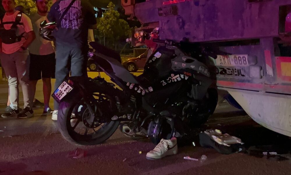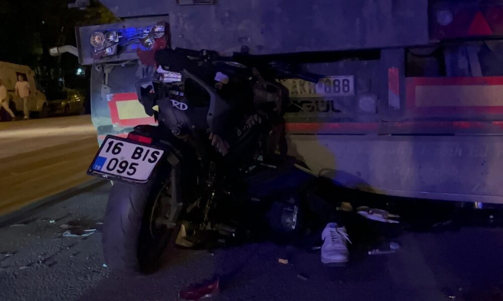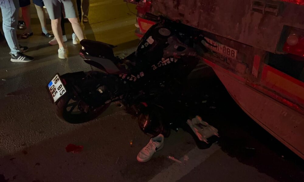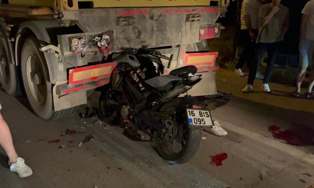 Kaza, saat 22.00 sıralarında Yıldırım ilçesi 75. Yıl Mahallesi Erdoğan Caddesi üzerinde meydana geldi. Şehir merkezi istikametine seyir halinde olan Furkan Tigit (20) yönetimindeki 16 BIS 095 plakalı motosiklet, sürücüsünün kontrolünden çıkarak park halinde 41 AKH 888 plakalı TIR’a arkadan çarptı. Kazada motosiklet sürücüsü Furkan Tigit ile arkasındaki yolcu Emir K. ağır yaralandı.