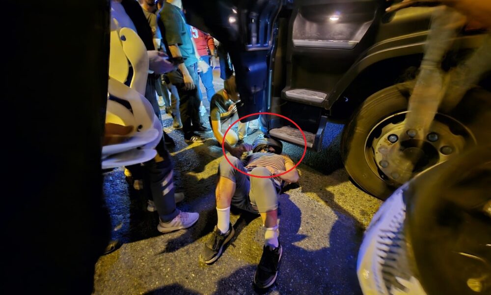 Motosiklet park halindeki TIR’a çarptı; başındaki kask sayesinde ölümden döndü