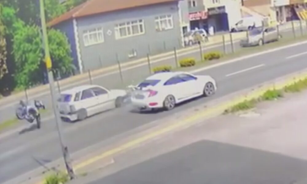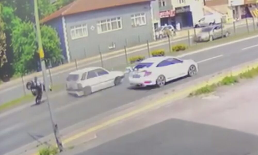 Motosiklet tellere çarpıp takla attı; kaza anı kamerada