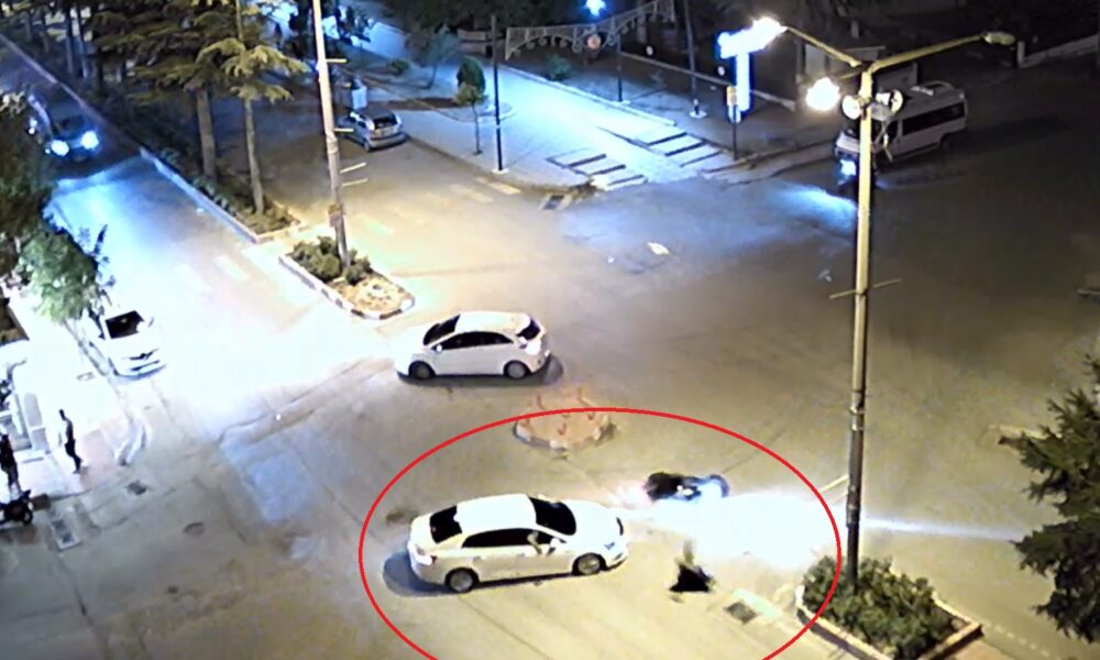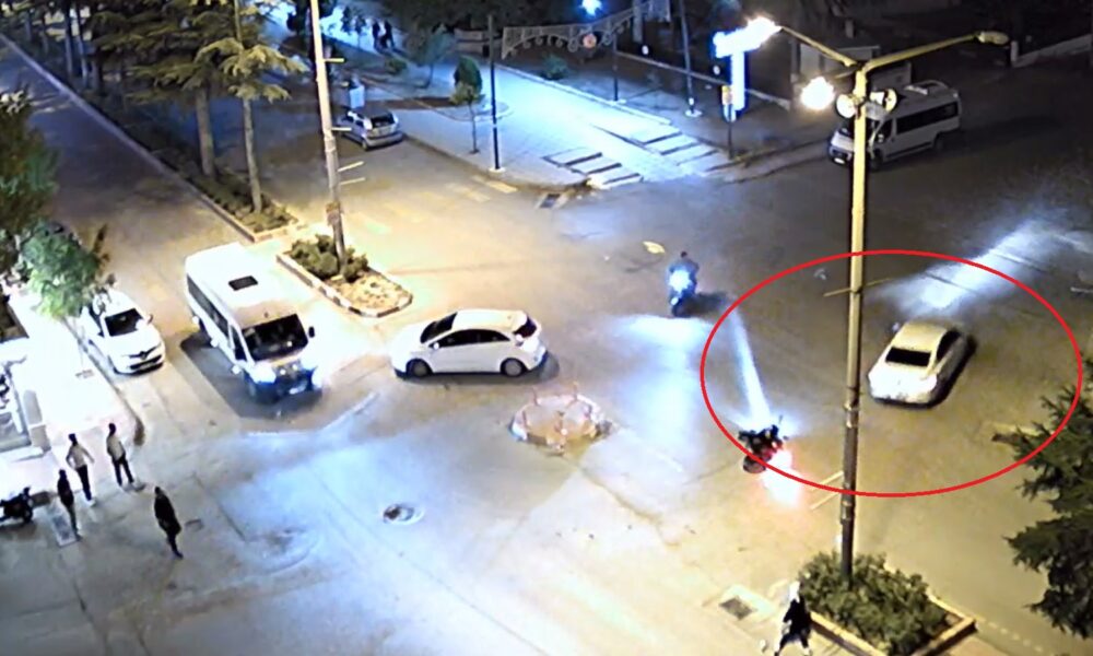Motosiklete çarpan otomobilin sürücüsünün kaçtığı kaza kamerada