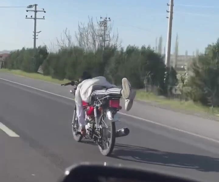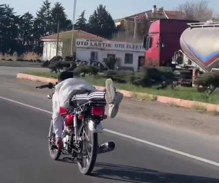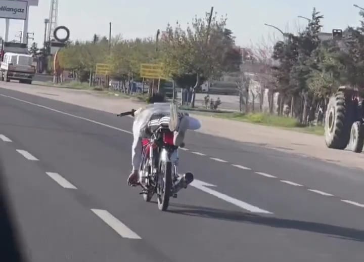 Olay, saat 09.00 sıralarında Aksaray- Ankara kara yolunun 15inci kilometresinde meydana geldi. Kara yolunda motosikletiyle seyreden sürücü, üzerine yattı. Yptığı tehlikeli hareketler, trafikte seyreden sürücülerin cep telefonu kamerasına yansıdı.