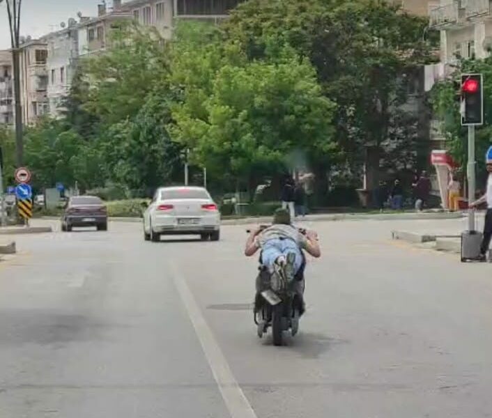 Kırşehir Zübeyde Hanım-Ankara Caddesi üzerinde plakası ve ismi öğrenilemeyen bir sürücü, motosikletin üzerine yüzüstü yattı. Kasksız olan sürücü, üzerine yattığı motosikletle trafikte seyretti. Motosiklet sürücüsü, bir otomobil sürücüsü tarafından cep telefonuyla kaydedildi. Motosiklet sürücüsünün aynı zamanda kırmızı ışıkta geçtiği de görüntülere yansıdı.