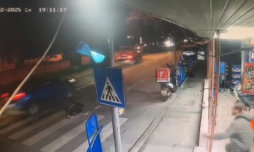 Kaza, dün saat 19.00 sıralarında Mudanya- Bursa yolunda meydana geldi. Motokurye C.Ç.’nin (22) kullandığı motosiklet, yaya geçidinden kırmızı ışıkta geçtiği iddia edilen A.K.ye çarptı. Yaya, çarpmanın etkisiyle savrulup yere düştü. Bu sırada diğer sürücüler araçlarıyla yerde yaralı halde yatan A.K.’nin yanından geçip, yollarına devam etti. Çevredeki esnaf, trafiği durdurup yaralının yardımına koştu. O anlar, bir iş yerinin güvenlik kamerasına da yansıdı.