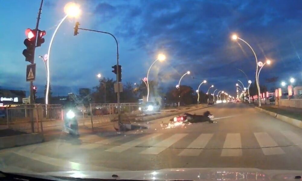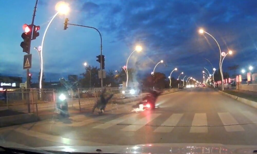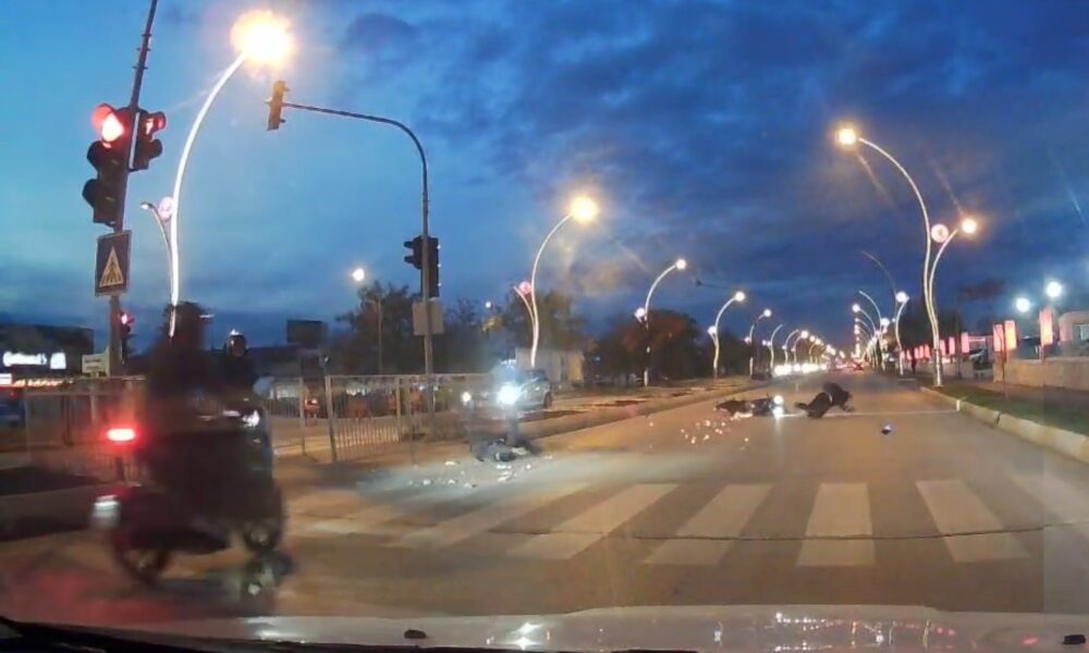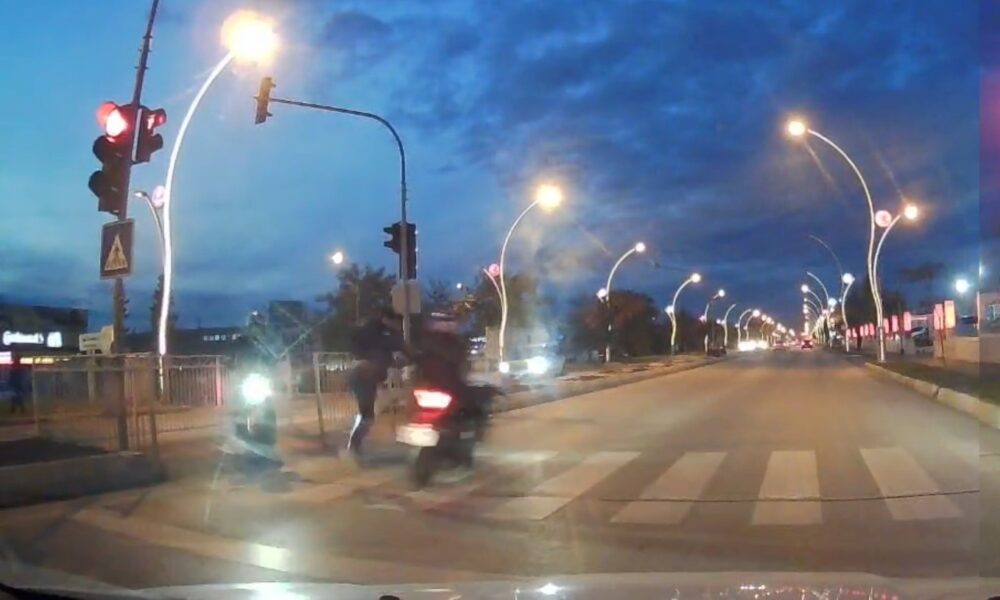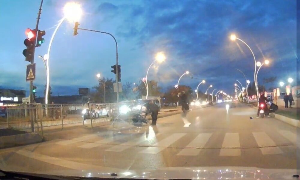 Kaza, akşam saatlerinde Atatürk Bulvarı üzerinde meydana geldi. Yayalara yeşil ışık yandığı sırada caddenin karşısına geçmek isteyen O.G.ye, bu sırada kırmızı ışıkta durmayan Ü.B. yönetimindeki 22 AET 352 plakalı motosiklet çarptı. Çarpışmanın etkisiyle O.G. ile motosiklet sürücüsü Ü.B. yola savrularak yaralandı. İhbarla bölgeye sağlık ve polis ekipleri sevk edildi. Yaralılar, ilk müdahalelerinin ardından ambulansla hastaneye sevk edildi. Kaza anı, arkadan gelen başka bir aracın kamerasına yansıdı.