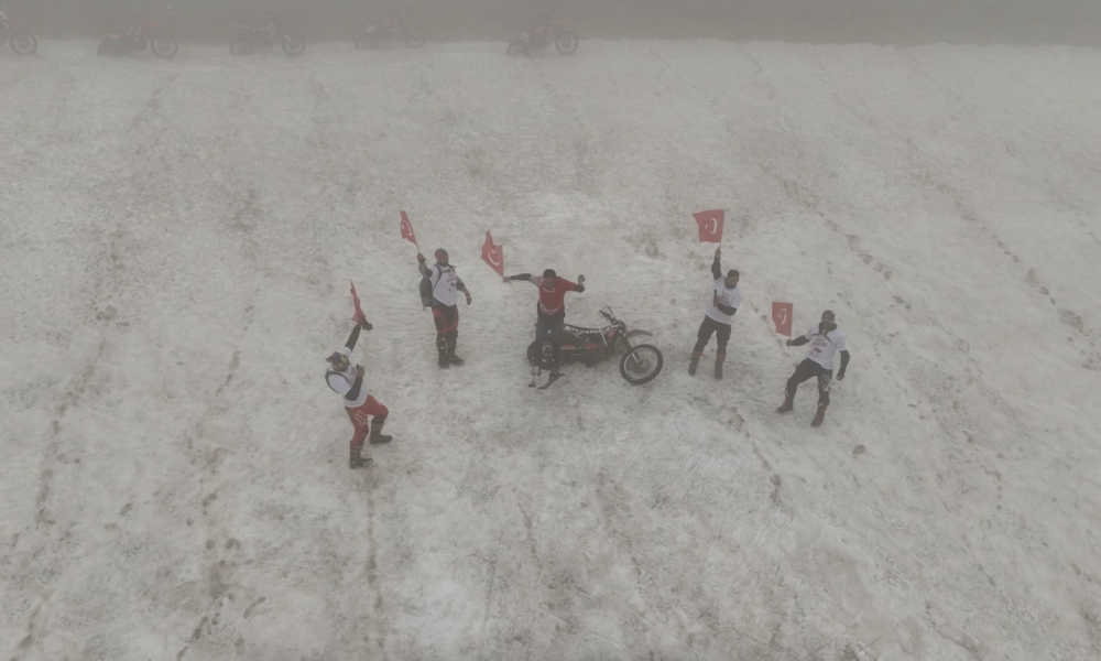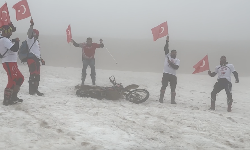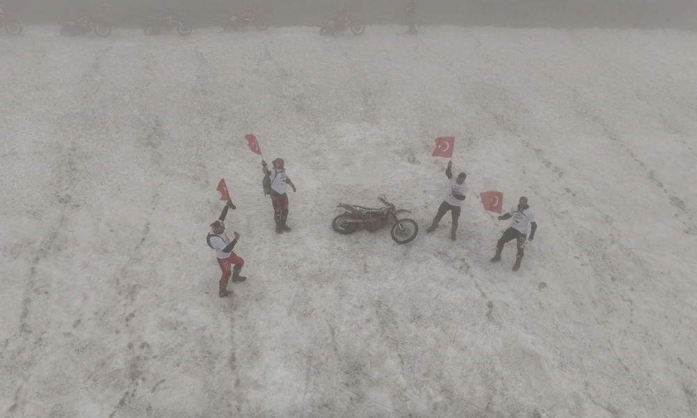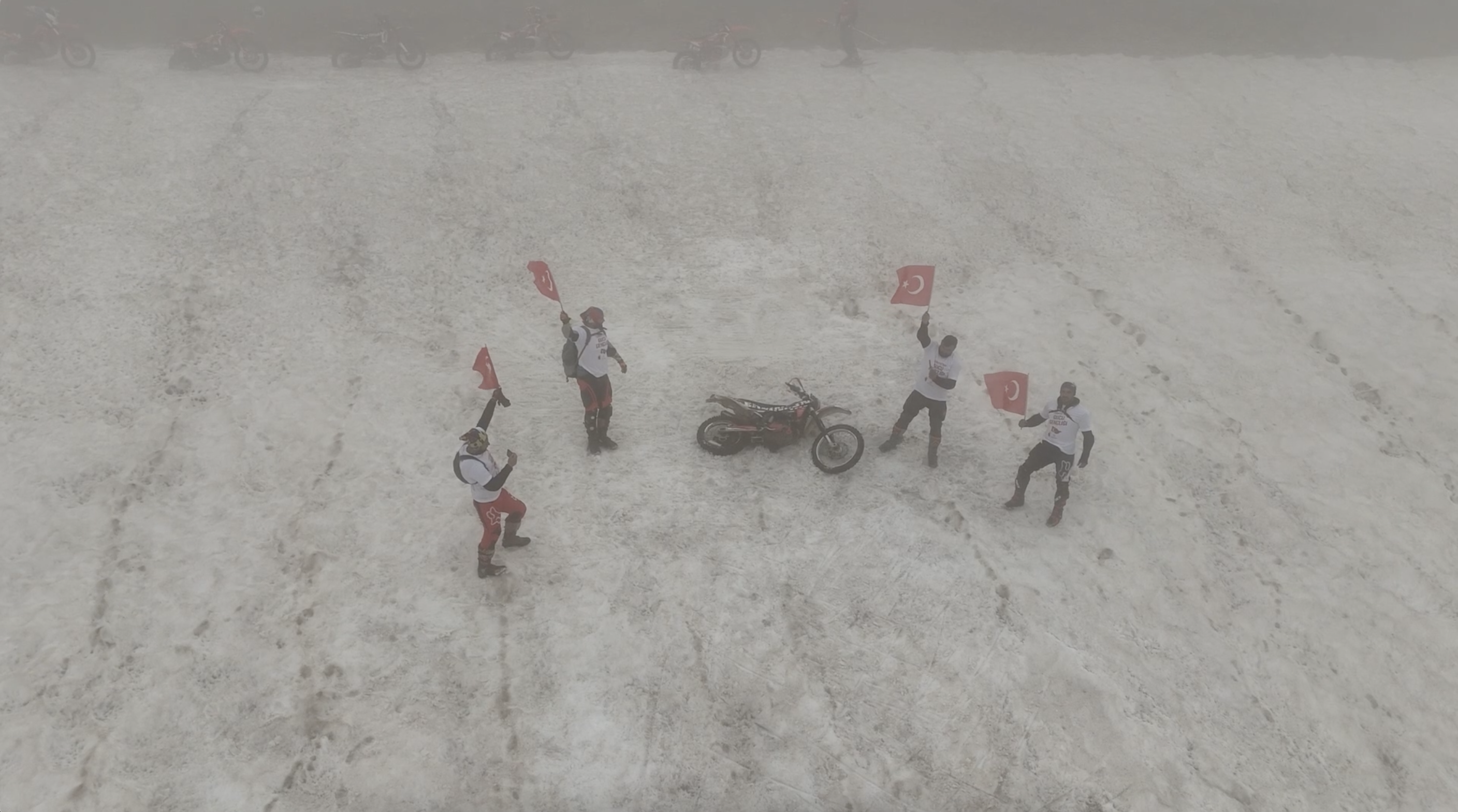 Motosikletli grup, 3 bin 300 rakıma çıkıp karlı zirvede Türk bayrağı açtı