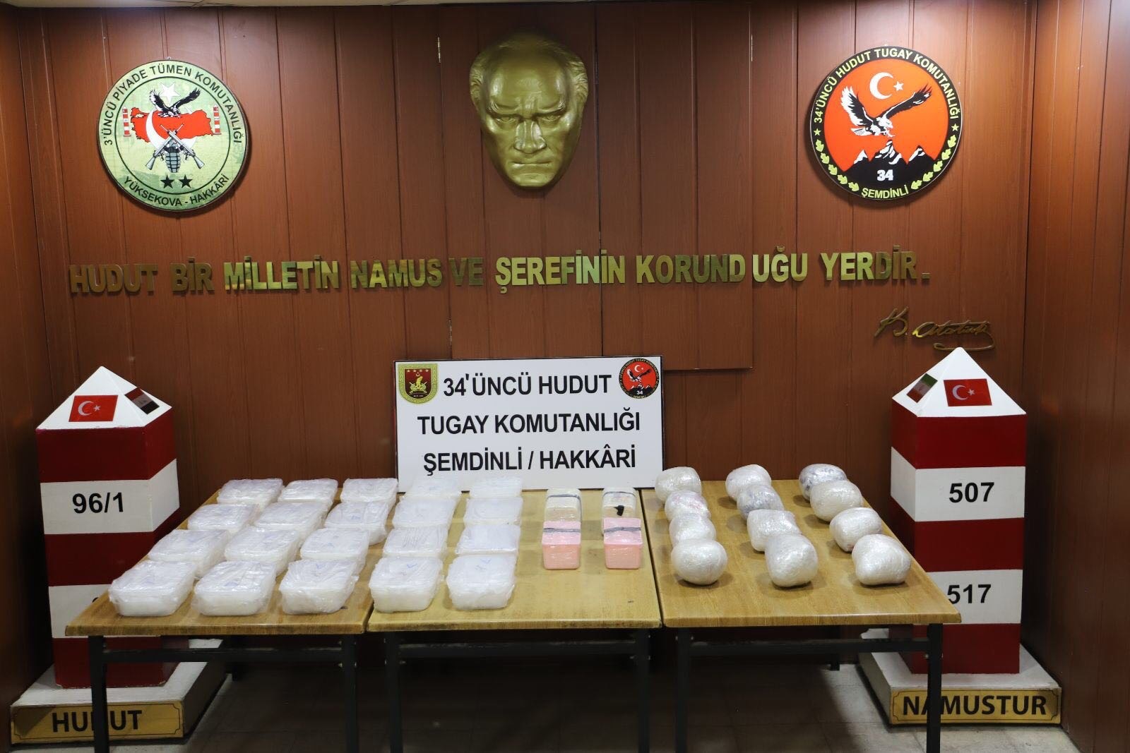 Milli Savunma Bakanlığının sosyal medya hesabından yapılan paylaşımda, “Keşif, gözetleme ve devriye faaliyetlerini aralıksız sürdüren Hudut Kartallarımız, Şemdinli/Hakkâri hudut hattında İran’dan Türkiye’ye yasa dışı yollarla geçmeye çalışan 2 şahsı engelledi. Bölgede yapılan arama-tarama faaliyetinde 2 çuval içerisinde 40.419 gram metamfetamin ele geçirdi. Ele geçirilen uyuşturucu madde, Jandarma’ya teslim edildi” ifadelerini kullandı.