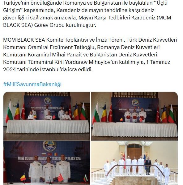 “Türkiye öncülüğünde Romanya ve Bulgaristan tarafından oluşturulmuş, NATO kuvvet yapısı dışında kalan bir girişimdir. Söz konusu görev kuvveti, 11 Ocak 2024 tarihinde imzalanan mutabakatla kurulmuş ve 1 Temmuz 2024te ilk aktivasyonu ilan edilmiştir. Temel görevi, Karadenizde mayın arama faaliyetleri icra etmek ve kritik su altı altyapılarının güvenliğine katkı sağlamak olan bu yapı, katılımcı ülkelerin milli mayın arama gemileriyle faaliyet göstermekte, komuta ve karargah görevi 6 aylık rotasyonlarla üç ülke arasında dönüşümlü olarak yürütülmektedir. Halihazırda görev kuvveti, ülkemiz tarafından komuta edilen 9uncu aktivasyon periyodunu icra etmektedir.”