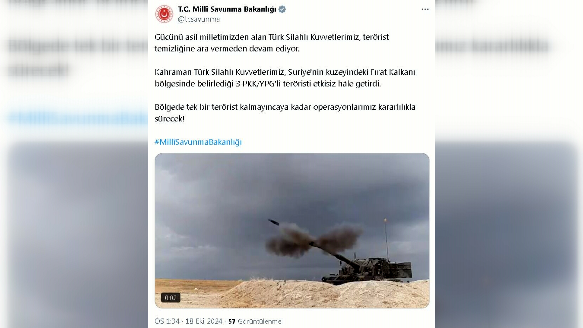 MSB: Suriye’nin kuzeyinde 3 terörist etkisiz hale getirildi
