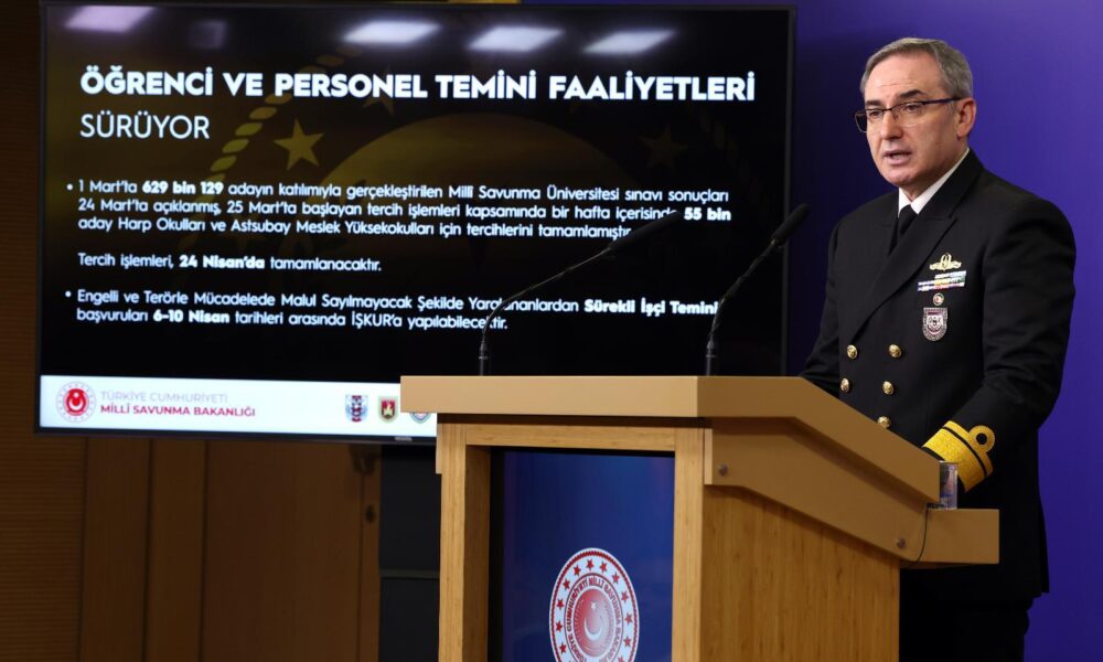 MSB Basın ve Halkla İlişkiler Müşaviri ve Bakanlık Sözcüsü Tuğamiral Zeki Aktürk, son 1 haftada yapılan faaliyetlere ilişkin bakanlıkta basın toplantısı düzenledi. Tuğamiral Aktürk, 1 Mart’ta 629 bin 129 adayın katılımıyla gerçekleştirilen Milli Savunma Üniversitesi sınavının sonuçlarının 24 Martta açıklandığını hatırlatarak, “25 Mart’ta başlayan tercih işlemleri kapsamında bir hafta içerisinde 55 bin aday Harp Okulları ve Astsubay Meslek Yüksekokulları için tercihlerini tamamlamıştır. Tercih işlemleri, 24 Nisan’da tamamlanacak olup, şanlı ordumuzda görev yapmak isteyen gençlerimizi, Türk Silahlı Kuvvetlerimizin ihtiyaç duyduğu nitelikli insan gücünü, milli ve çağdaş eğitim anlayışıyla yetiştiren, savunma, güvenlik ve strateji alanlarında bilgi üreten ve uluslararası düzeyde saygın bir konuma sahip Milli Savunma Üniversitemize bekliyoruz” dedi.