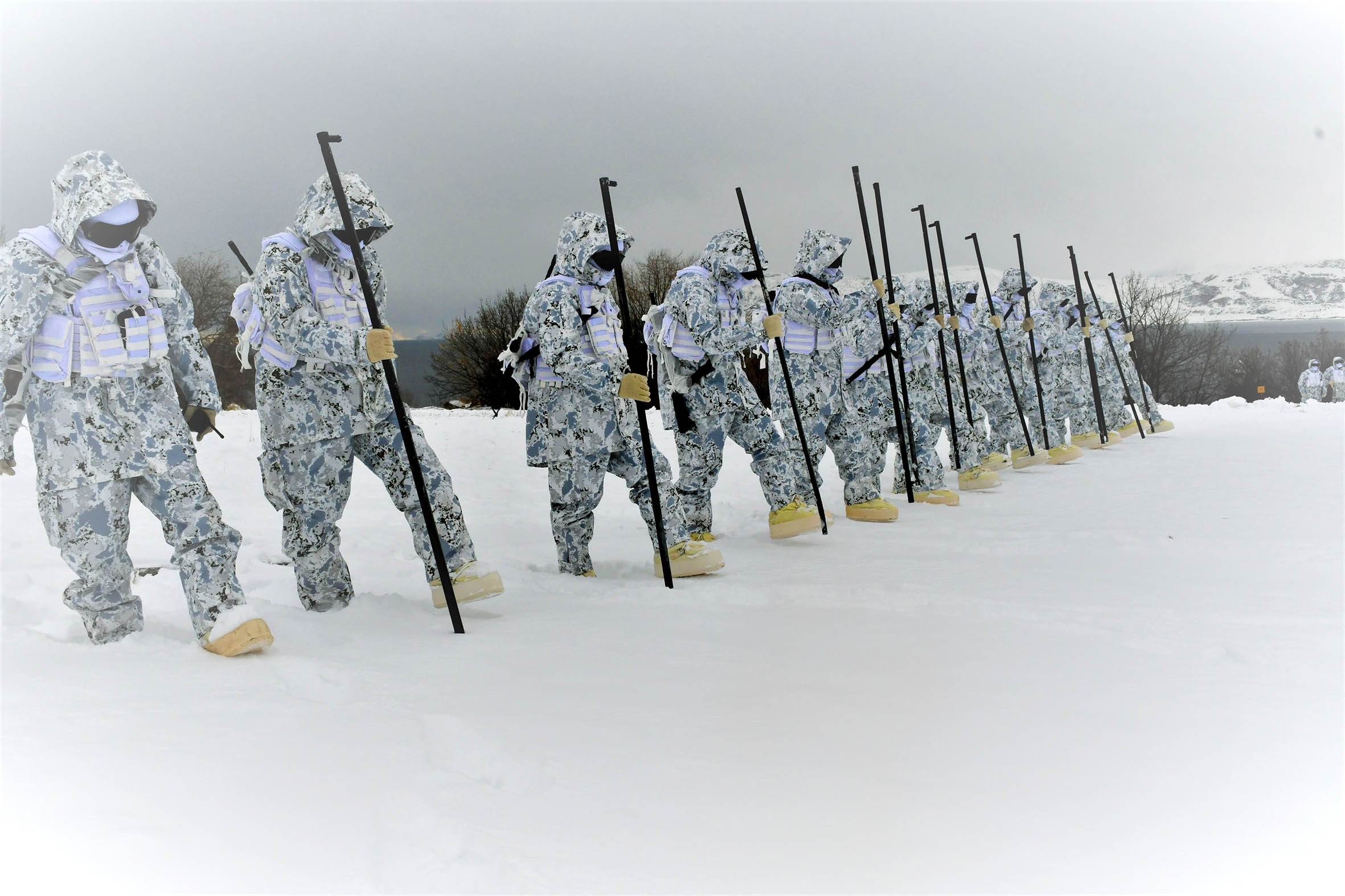 Bakanlığın sanal medya hesabından yapılan paylaşımda eğitime ilişkin fotoğraflar yer alırken, “9uncu Komando Tugay Komutanlığı ve 10uncu Komando Tugay Komutanlığınca derin kar ve şiddetli soğuklarda muharebe eğitimi icra edildi” denildi.