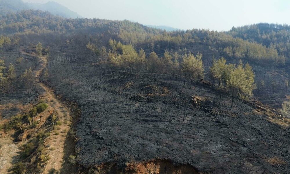 Muğla’da 3 bin hektar ormanın zarar gördüğü yangında yanan alanlar dronla görüntülendi