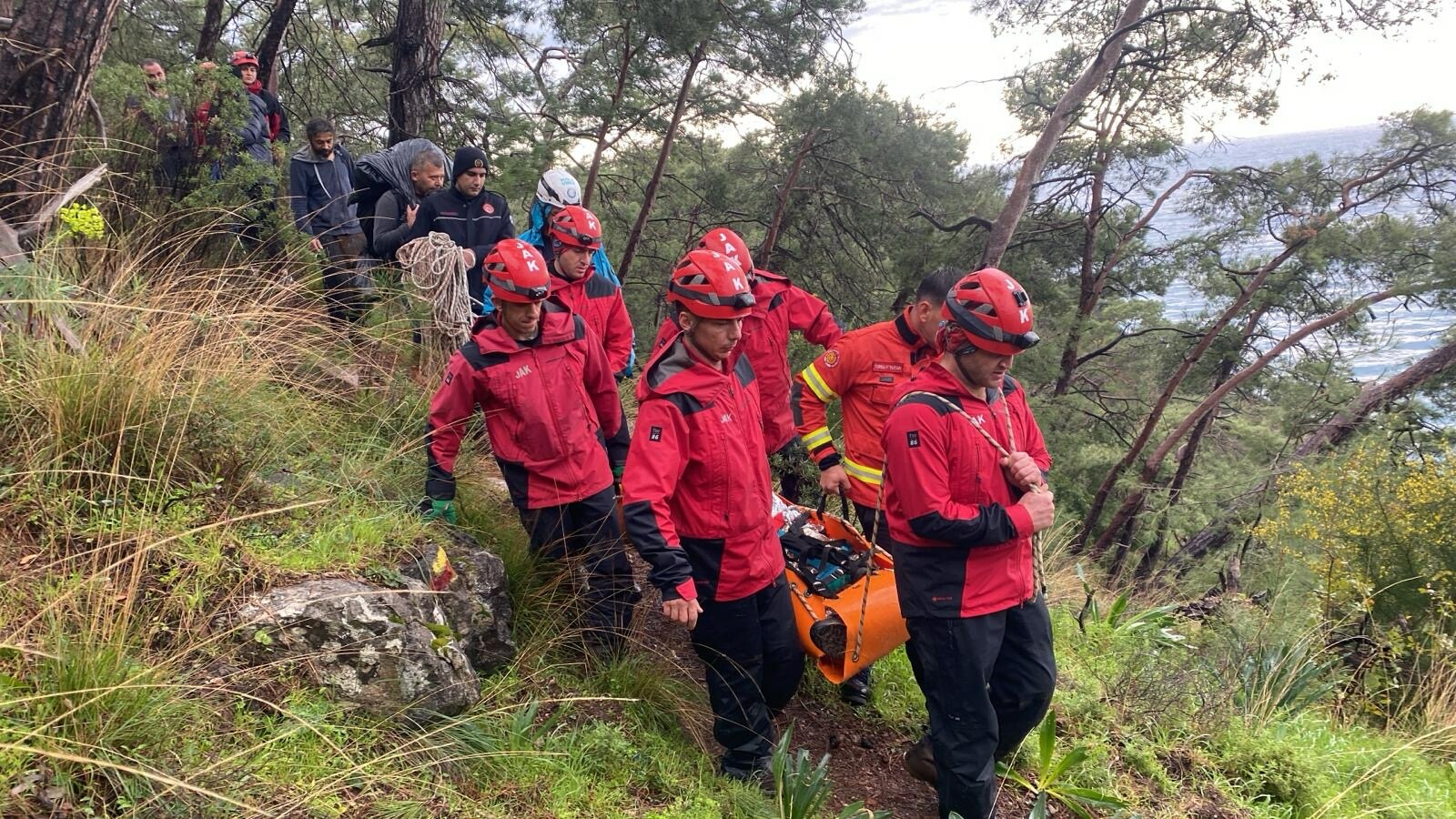 Olay, saat 15.30 sıralarında Faralya Mahallesi Kabak Koyu mevkisinde meydana geldi. Cihan A., iddiaya göre arkadaşına ait çantayı almak isterken dengesini kaybederek kayalıklardan düştü. İhbar üzerine bölgeye Jandarma Arama Kurtarma Ölüdeniz Timi, UMKE ve itfaiye ekipleri sevk edildi. Ekipler, kayalık bölgedeki yaralıya ulaşarak ilk müdahaleyi yaptı. Daha sonra sağlık ekiplerine teslim edilen Cihan A., ambulansla Fethiye Devlet Hastanesine kaldırıldı.