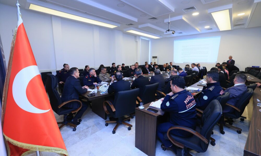 Muğla Valiliği’nde düzenlenen 2025 yılı orman yangınlarıyla mücadeleye hazırlık toplantısında 2024teki yangınlar değerlendirilerek alınacak önlemler ve koordinasyon çalışmaları, görev yapacak personel, araç-gereçler, hava unsurları, gönüllü ekiplerin katkısı ve ilk müdahale süreleri gibi konular ele alındı. Muğla Orman Bölge Müdürü Mustafa Ülküdür, personel ve ekipman durumu, erken uyarı ve ihbar sistemleri, eğitim ve farkındalık çalışmaları, koruyucu önlemler ile yangına ilk müdahale ve sonrasında yürütülen çalışmalarla ilgili sunum yaptı.