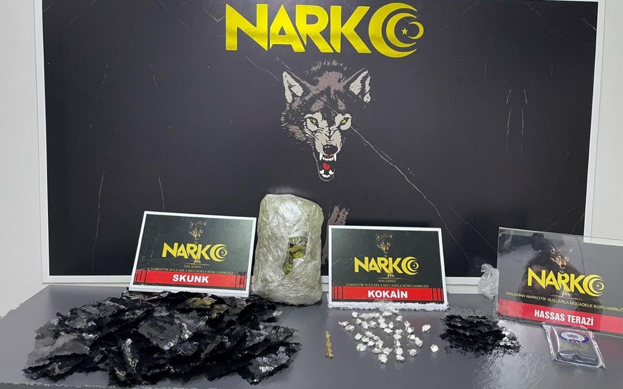 Muğla İl Emniyet Müdürlüğü Narkotik Suçlarla Mücadele Şubesi ekipleri, Ortaca ilçesinde piyasaya uyuşturucu madde sürüleceği ihbarı aldı. İhbar üzerine harekete geçen polis ekipleri, Cumhuriyet Başsavcılığı koordinesinde 21 Mayıs günü bir otele operasyon düzenledi. Polisin operasyonunda şüphelilerin kaldığı otel odasında 840 gram skunk, 29 gram kokain, çok sayıda kilitli poşet, 1 hassas terazi ele geçirildi. Olayla ilgisi olduğu tespit edilen 4 kişi gözaltına alındı. Gözaltına alınan ve polisteki işlemlerinin ardından adliyeye sevk edilen 4 kişiden 2’si tutuklandı, 2’si adli kontrol şartı ile serbest bırakıldı.