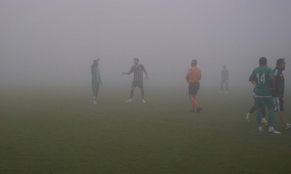 Kartepe'de Muğlaspor ve Fethiyespor arasında oynanan hazırlık maçı yoğun sis nedeniyle yarıda kaldı. (Foto: MUĞLA, DHA)