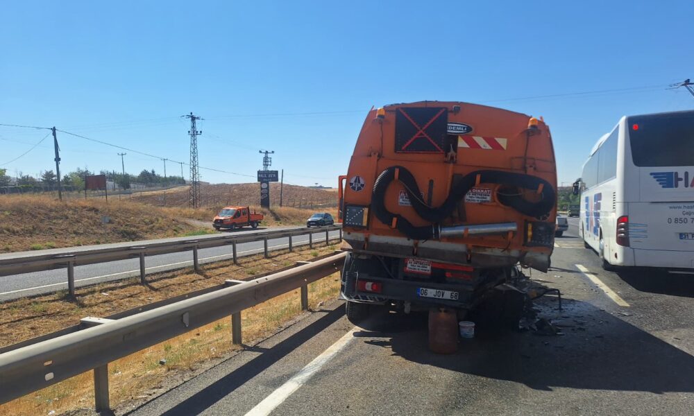 • Ankara'nın Gölbaşı ilçesinde, 2 otomobilin Karayolları Genel Müdürlüğü temizlik aracına arkadan çarptığını kazada; 1 kişi öldü, 1 kişi yaralandı. Fotoğraf: Ankara, (DHA)