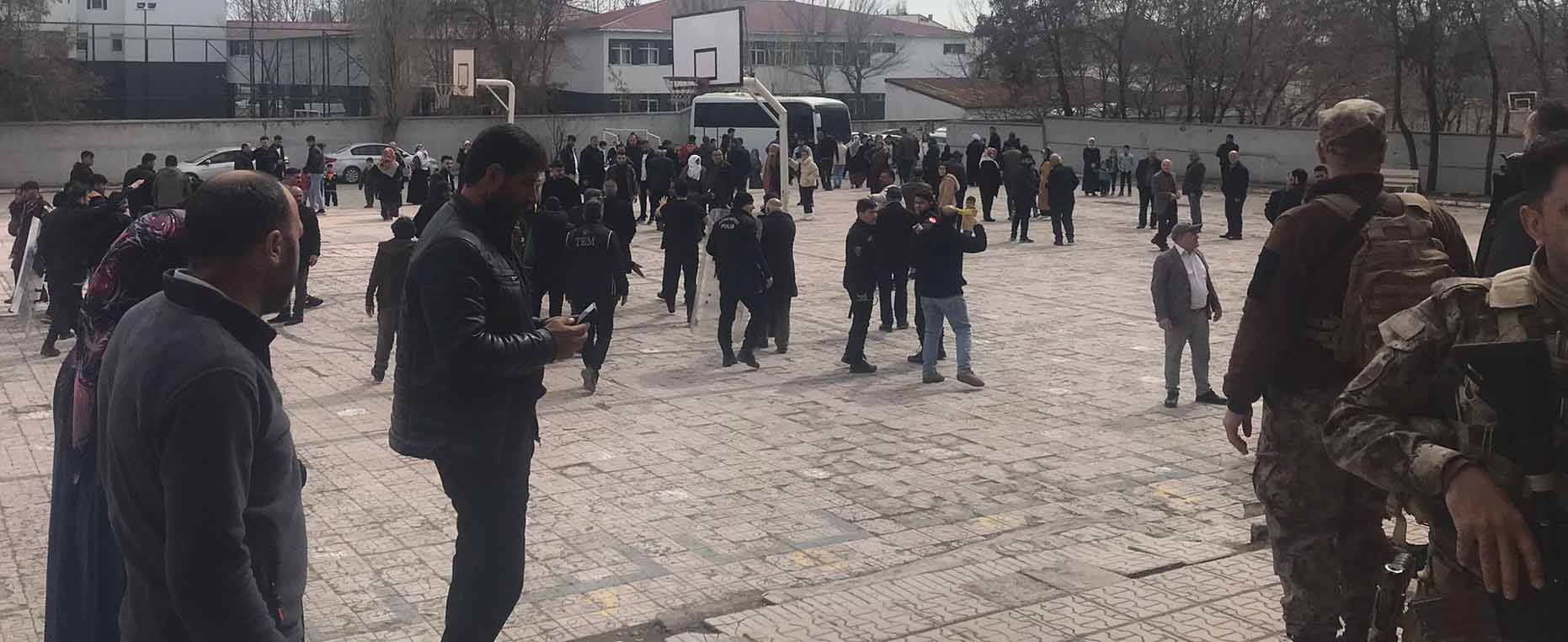 AĞRIda muhtar adayları ve yakınları arasında yaşanan tartışma, özel harekat ve çevik kuvvet polisinin müdahalesiyle büyümeden önlendi. Taraflar güçlükle okul dışına çıkarıldı.100üncü Yıl YİBOda muhtarlar arasında adayları yönlendirme iddiasıyla tartışma çıktı. Tartışmaya adayların yakınları da dahil oldu. Taraflar arasında itişmeler yaşanırken, bölgeye özel harekat ve çevik kuvvet polisleri sevk edildi. Olaya müdahale eden ekipler, tarafları ayırdı. Kalkan kullanmak zorunda kalan polis, tarafları okulun dışına çıkarıp bölgeden uzaklaştırdı.