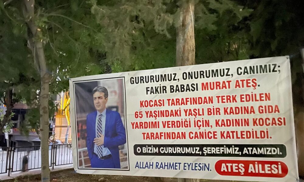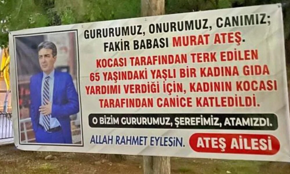 Diğer yandan Murat Ateşin ailesi, ilçenin çeşitli noktalarına, üzerinde Gururumuz, onurumuz, canımız; fakir babası Murat Ateş, kocası tarafından terk edilen 65 yaşındaki yaşlı bir kadına gıda yardımı yaptığı için kocası tarafından canice katledildi. O bizim gururumuz, şerefimiz, atamızdı. Allah rahmet eylesin yazılı pankartlar astı.