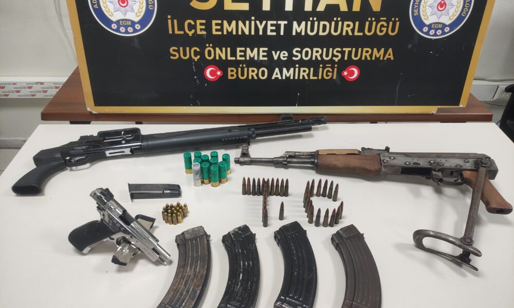 Seyhan İlçe Emniyet Müdürlüğü Suç Önleme ve Soruşturma Büro Amirliği ekipleri, 4’üncü Sulh Ceza Hakimliği tarafından mühür bozma suçundan hakkında arama kararı çıkartılan Mustafa Y.nin Yeşilyuva Mahallesi 36028 Sokak’ta saklandığı bilgisine ulaştı. Önceki gün iki katlı müstakil eve baskın yapan ekipler, odunlukta bebek battaniyesine sarılı makineli tüfek, otomatik tüfek, tabanca ve şarjörler ele geçirdi. Mustafa Y., “Silahlar benim değil, kim koydu bilmiyorum” dedi. Bunun üzerine polis ekipleri, ikinci katta oturan komşusu Hakan S.yi de gözaltına aldı. Mustafa Y. ve Hakan S., 5 Ocak Polis Merkezi Amirliğine teslim edildi. Adliyeye sevk edilen şüphelilerden Mustafa Y. mühür bozma suçundan yapılan işlemlerin ardından serbest kaldı, Hakan S. ise tutuklandı.