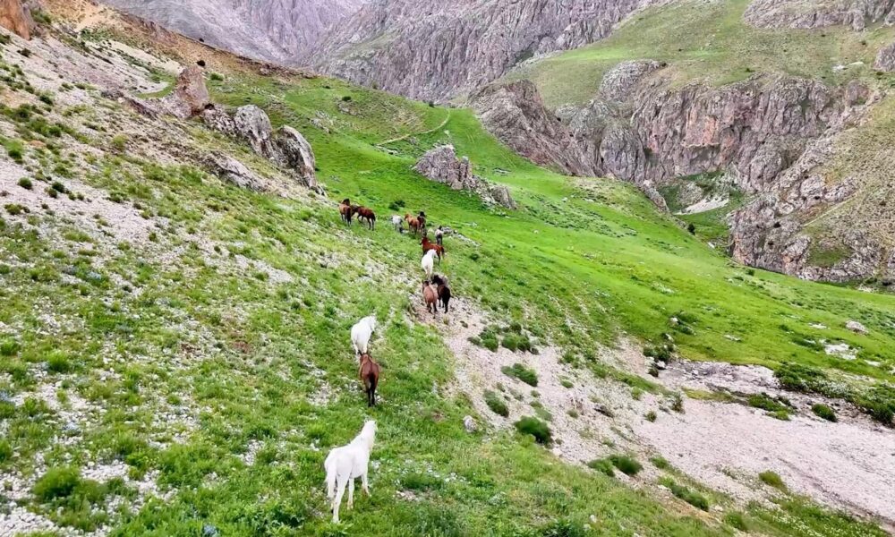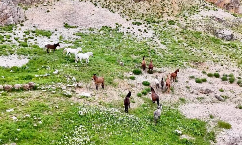 Munzur Dağları’ndaki yılkı atları dron ile görüntülendi