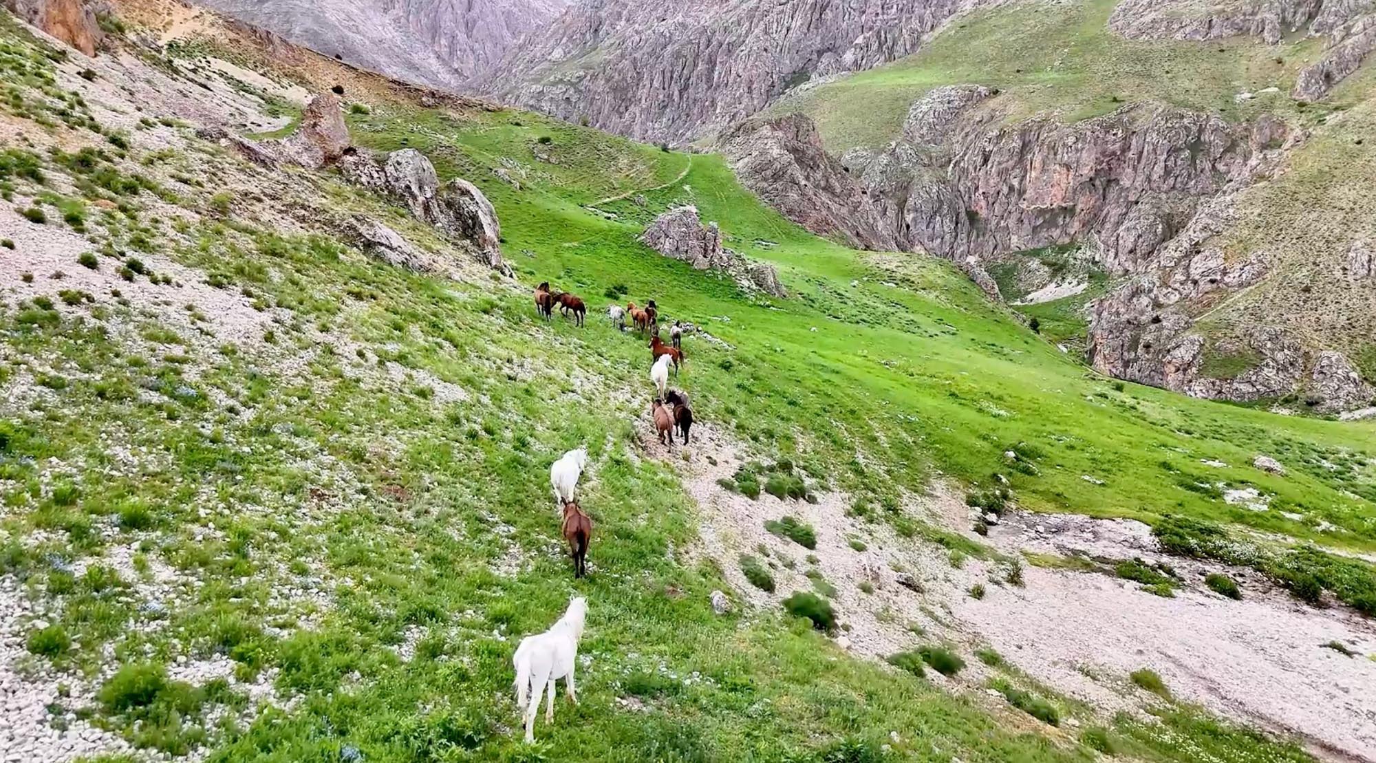 Doğa ve fotoğraf tutkunu Fatih Civan, Erzincan-Tunceli arasında bulunan 3 bin 300 rakımlı Munzur Dağlarında özgürce dolaşan ve sayısı her geçen yıl artan yılkı atlarını dron ile kayıt altına aldı. Tarımda yaşanan makineleşme nedeniyle sahipleri tarafından serbest bırakılan atlar, Munzur Dağlarında yaşıyor. Atların sürüler halinde otlaması, güzel görüntüler oluşturdu.