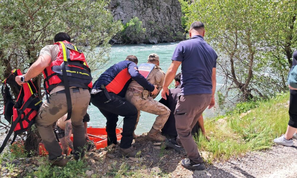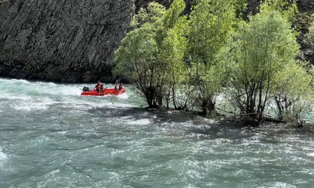 Munzur Nehri’nde akıntıyla sürüklenirken son anda suyun ortasındaki adacığa sığındı