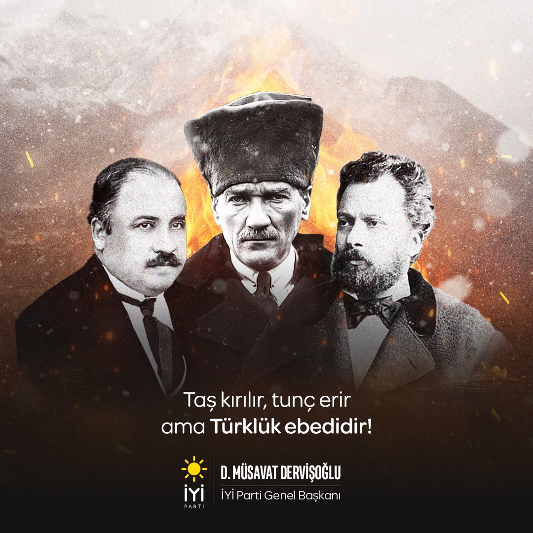 Dervişoğlu, paylaşımında Ulu Önder Mustafa Kemal Atatürk ile şair ve düşünürler Namık Kemal ve Ziya Gökalpin fotoğraflarının yer aldığı bir görsele de yer verdi.