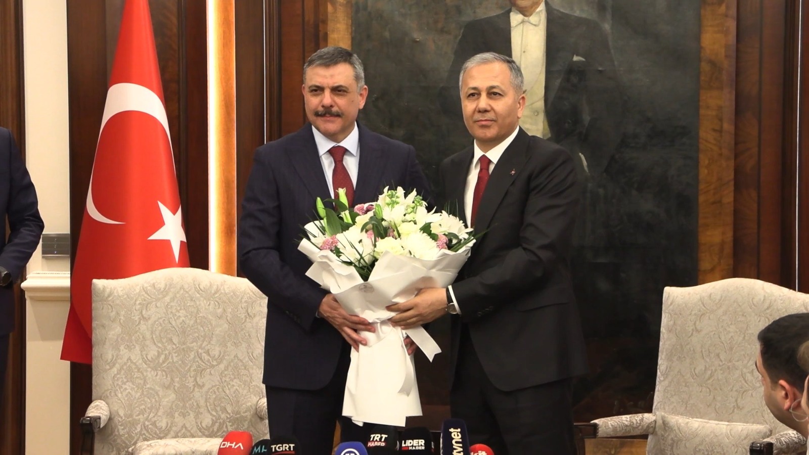 Çiçek ve hediye takdiminin ardından gazeteciler Ali Yerlikayaya soru sormak istedi. Yerlikaya ise “Ben özgürlüğe gidiyorum. Bu saatten sonra Sayın Bakanımız soru alabilir” diye cevap verdi.