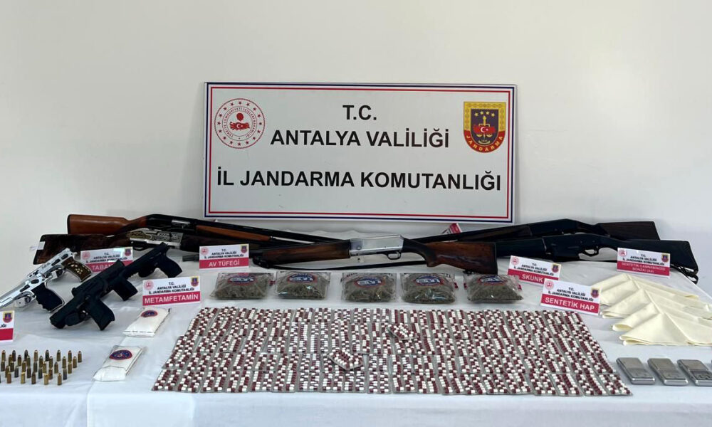 Antalya İl Jandarma Komutanlığı tarafından yürütülen çalışmalar sonucu Serik Cumhuriyet Başsavcılığı talimatları doğrultusunda Serik İlçe Jandarma JASAT ekipleri tarafından belirlenen 51 şüphelinin ev ve iş yerlerinde arama yapıldı. Aramada 2 bin sentetik hap, 1 kilo 50 gram skunk, 8 bin kullanımlık A4 kağıdına emdirilmiş uyuşturucu, 6 hassas terazi, uyuşturucu satışından elde edilen 43 bin lira, 5 ruhsatsız tabanca, 135 tabanca fişeği ve 5 ruhsatsız av tüfeği ele geçirildi. Gözaltına alınan şüphelilerden 7si tutuklanarak cezaevine gönderildi. Jandarmanın paylaştığı operasyon görüntüsünde, bir evdeki aramada ağzı açık soda şişesi içerisine gizlenen uyuşturucu haplar dikkat çekti.