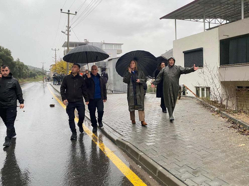 • Aydın’ın Nazilli ilçesinde etkili olan sağanakta Nazilli ilçe Kaymakamı Huriye Küpeli Kan (ortada), Belediye Başkanı Dr. Ertuğrul Tetik (sağda) bölgede incelemede bulundu. Fotoğraf: Bahattin ALBAYRAK/ Nazilli, (Aydın), (DHA)