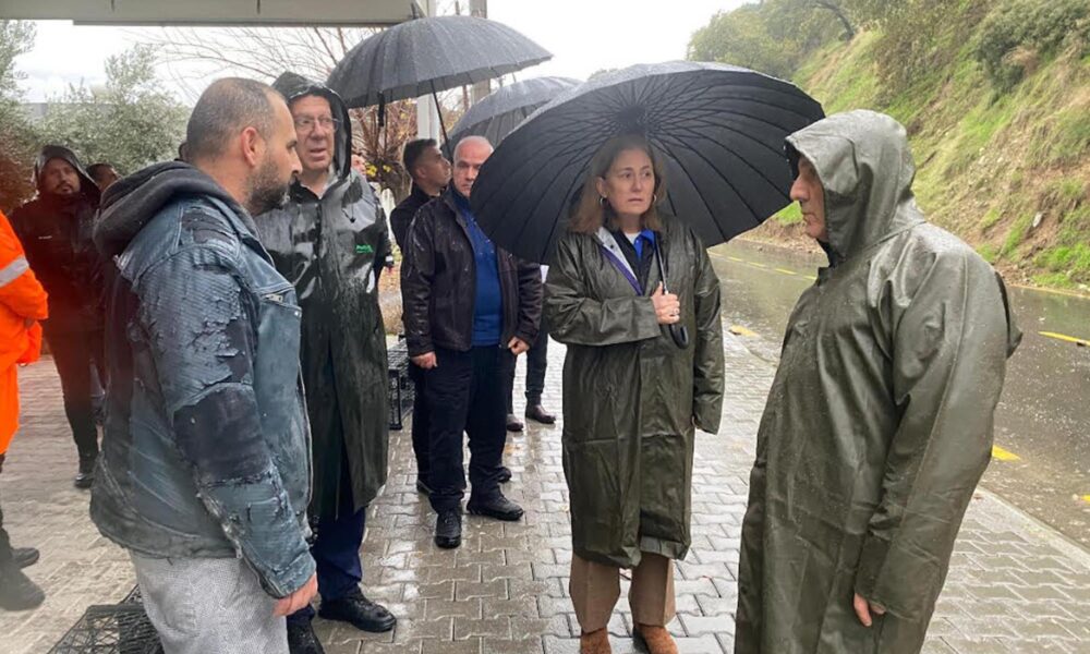 • Aydın’ın Nazilli ilçesinde etkili olan sağanakta Nazilli ilçe Kaymakamı Huriye Küpeli Kan, Belediye Başkanı Dr. Ertuğrul Tetik bölgede incelemede bulundu. Fotoğraf: Bahattin ALBAYRAK/ Nazilli, (Aydın), (DHA)